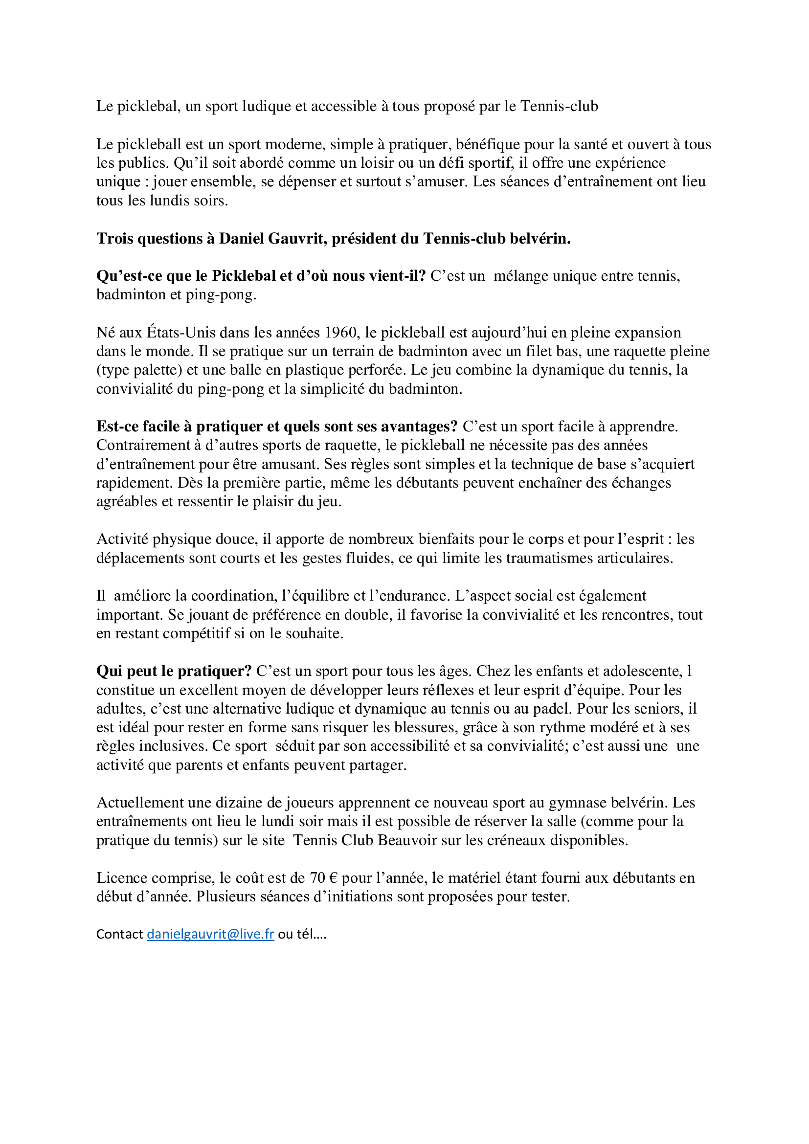 Vous souhaitez devenir membre du TC Belvérin
